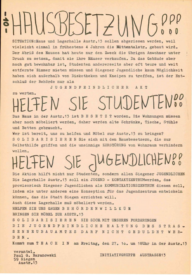 „Eigentum verpflichtet – Zur Geschichte des Siegener Häuserkampfes“